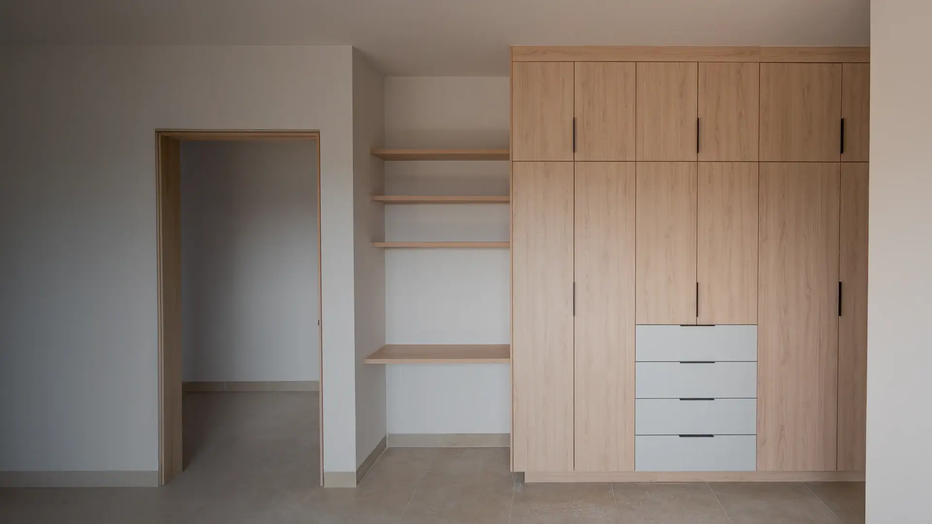 The balance between hanging space, drawers, shelves, and circulation is defined by real use—not generic templates.